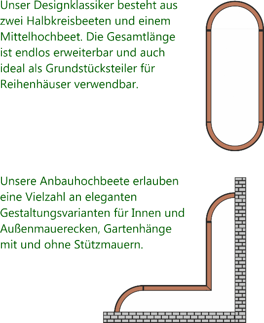 Unsere Hochbeet Serie ist ein modulares Baukastensystem, das gestalterisch keine Wünsche offen lässt. Man kann sich Hochbeete mit unterschiedlichen Formen nach Wunsch zusammenstellen. Bei der Entwicklung haben wir unseren Schwerpunkt speziell auf die Ergonomie fokussiert, die es auch älteren Menschen ermöglicht, rückengerecht und standsicher zu Gärtnern. Das elegante und zeitlose Design unserer Hochbeete wertet jeden Garten auf. Bei der Materialauswahl haben wir besonders auf Nachhaltigkeit geachtet. Um unsere Ökobilanz abzurunden, verwenden wir fast ausschließlich Materialien, die wiederverwertbar oder ökologisch abbaubar sind. Unsere Beete werden überwiegend in Deutschland bzw. Europa hergestellt. Obwohl die Montage auch für ungeübte Heimwerker völlig einfach ist, können Sie auch gerne unseren Montageservice bei Ihrer Bestellung dazu buchen. Lieferzeiten, Zubehör, Sonderwünsche, Montage und Preise auf Anfrage.